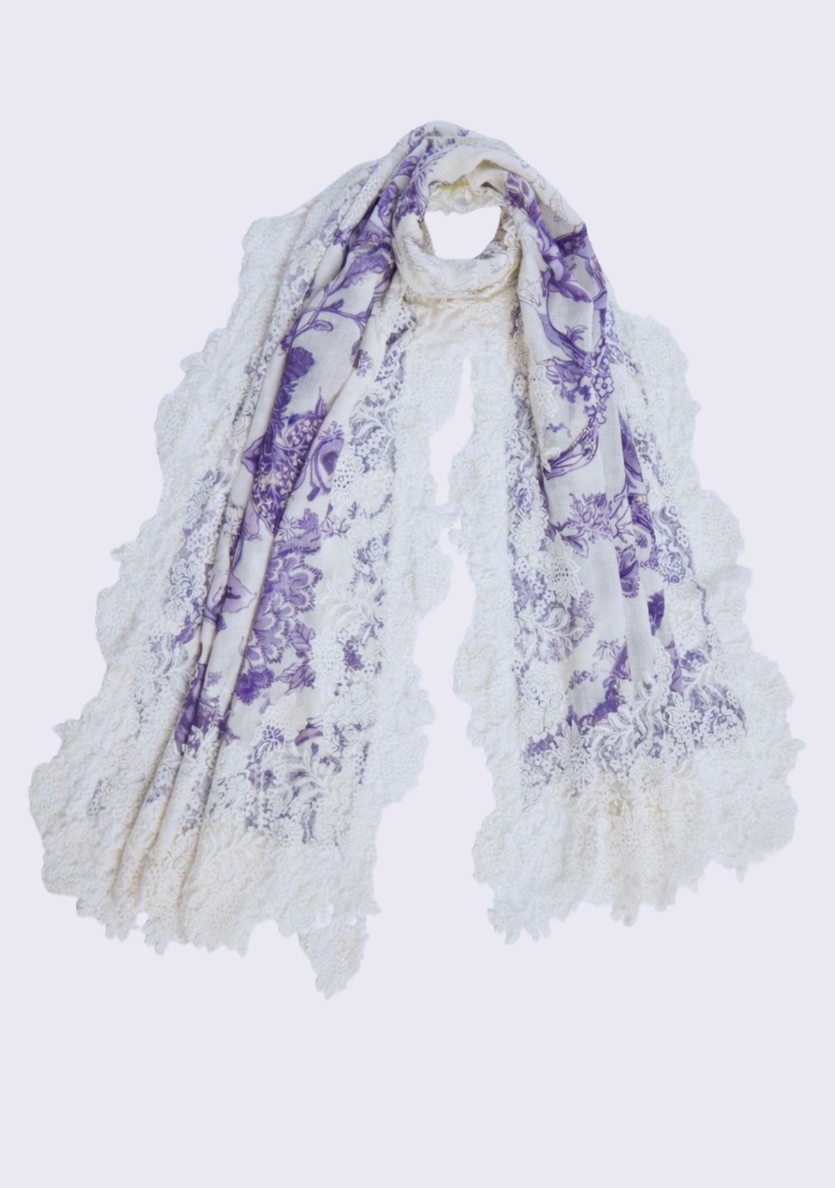 Violet Jacobean Print Wool & Silk Scarf Ivory Lace