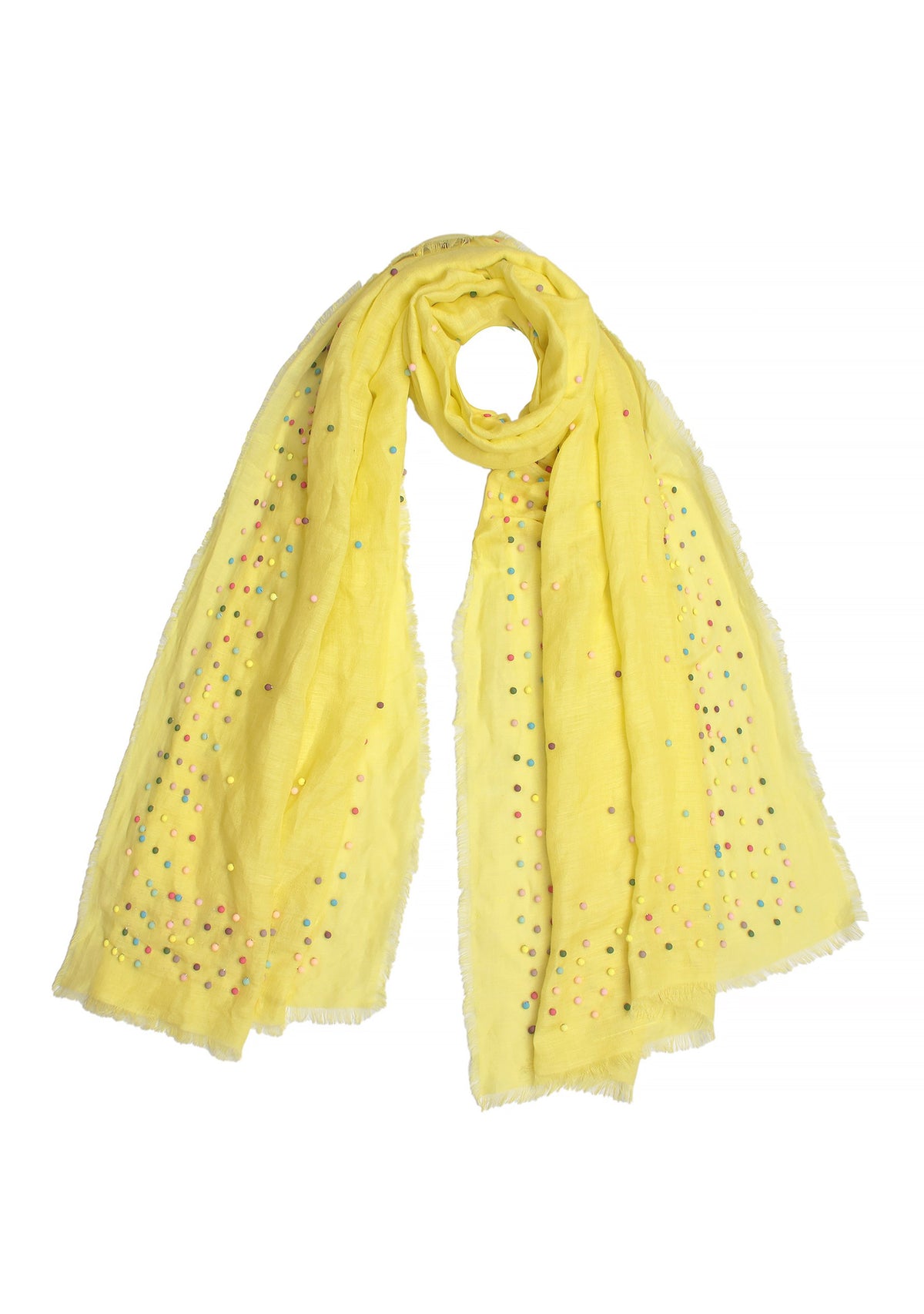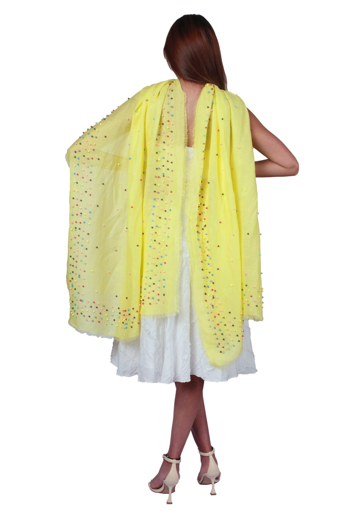 Yellow Linen & Modal ScarfMulti-colored Pearls